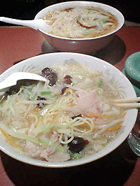 昼は農協ビル地下「永楽」でタンメン(850円)。同行のA池さんは鶏そば(1050円)を注文=写真上、差をつけられたなあ。帰宅してうどんを茹でながら、再チャレンジ。先に「iPod