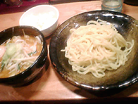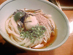 昼休みを利用して神田小川町「Victoria」で十数年ぶりにテニスラケット購入。古いテニスラケット持参で1割引きセール。“犠牲”となったのは押し入れの中で埃をかぶっていた20数年前(?)のプリンスのラケット。気分ルンルンで「うどん屋」の前を通りかかり、釜玉&かけ&いも天、計540円也。ここは「網十」、昼はセルフの「うどん屋」で夜は「ひもの屋」となる。さぬきうどんの味?うーん、大味で特徴なし、ただし店内の雰囲気は良し。☆2つ半か(☆5つが満点)? 釜玉の卵は黄身だけでいいな=写真左。