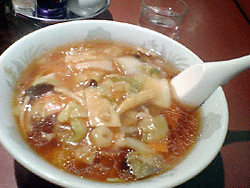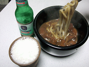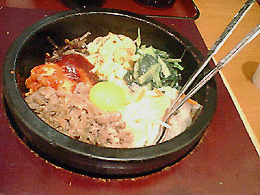 夜、笹やんのピアノレッスン終わって帰途、北千住ミルディス館1Fフードコートへ。いつも「はなまるうどん」のきつねうどん大盛りなので今回はちょっと趣向変えて、「うまいもんや」でカルビビビンバ(大)850円也=写真。熱くて“ふーふー”しながら今週2回目の“休肝”日を実行。北風寒い中、帰宅してカステラ1切れ&紅茶。