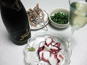 コルドン ネグロ)750mlを開ける!何にでも合うというので、“えさ”はタコぶつ、するめゲソ焼き、菜の花お浸し・・・・。メーンのおかずはホッケ焼き。今週の“休肝”日は勘弁してもらった。お正月だもん!?