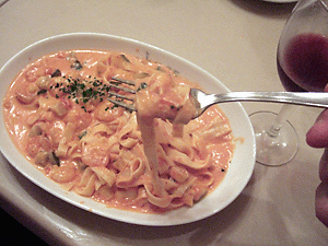 宇都宮に立ち寄り、人気のイタリアンレストラン「PIZZERIA VIVACE(ヴィヴァーチェ」で週末パスタランチ。1〜5番の中から、手打ち麺使った“5番”を選択。赤ワインをグラスで=写真。