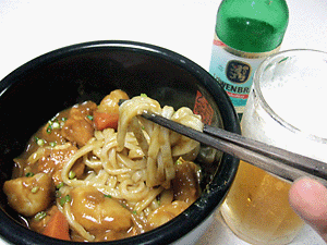 昨日のカレーを残してあったので、亀城庵「さぬき本膳うどん」太麺300gの半分を茹でて「カレーうどん」で今週1回目の“休肝”日。やはりジャガイモ、ニンジンの大きいのがゴロゴロしているカレーの方が“カレーらしく”て、いいですな。独レーベンブロイ・アルコールフリー(アルコール分0.5%未満)330ml(=写真)。写真撮った後に、ゆでたまご1個追加。今宵の「水戸黄門」に出ていた、母を探す旅の娘役の前田愛、いい演技します。気に入りました。彼女についてネットで探したらいろんな情報があるんですね。ふむふむ・・。