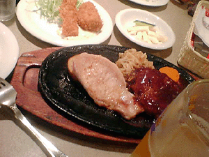 笹やんのピアノレッスンのあと、三枝子さんと新御茶ノ水で待ち合わせ。ナントカ記念日ということで、洒落たお店で食事でも!?という構想だったが、結局、駿河台下の学生向けのボリュームたっぷりのレストラン「バンビ」に入って、ハンバーグ&豚肉生姜焼き&海老フライ&クリームコロッケのセット(1000円)、もちろんジョッキ生(450円)を加えて・・という凄まじいメニュー。しかも店に入るや即、チケットを自販機で購入するシステムで、ロマンもクソもありません。30数年前、安月給の身でこの界隈をうろついていたわけで、当時を偲ぶにはキッチン・ジローやキッチン・カロリー、さらにはこういうお店の方がなんとなく性に合っている感じですな。今朝、せっかく76kg台が手に届くところまできていたのに“元の木阿弥”でしょうか・・・・・??帰宅してロング缶&350ml缶2つ。