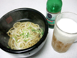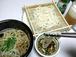 夕食は「亀城庵」の「さぬき本膳うどん」太麺300gの4分の3を大鍋で茹でて「熱々うどん」と「冷やしざるうどん」で。独レーベンブロイ・アルコールフリー(アルコール分0.5%未満)330ml(=写真)。