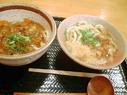 さて今宵は笹やんのピアノレッスン。その後の夕食“休肝”日メニューを検討した結果、「はなまるうどん」秋葉原南店でカレーうどん(399円)&かけ(小、105円)、〆て504円也=写真。「かけうどん」にはトッピング“自由=無料”のかつおぶしと天かすを入れてみた。