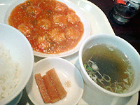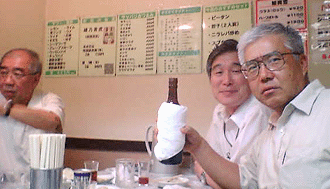 夕方6時から大手町農協ビル地下の中華「永楽」で職場の暑気払い。3〜5名用の「とくとくセット(4200円)」の内訳は、白切鶏(むしどり)、韮菜炒猪肝(ニラレバ炒め)、餃子2人前、乾焼蝦仁(エビチリソース)。このほか豚角煮、蟹玉ets.