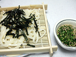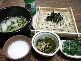朝ジョギングして77.0kg。連休明けの出勤はだるい・・。社員食堂で炒飯(530円)&惣菜(イカ・マリネ=120円)。今週1回目の“休肝”日!夕食は亀城庵「さぬき本膳うどん・太麺300g」の半分を13分間茹でて「ざるうどん」、蒲鉾(数切れ)を添える=写真。独レーベンブロイ・アルコールフリー(アルコール分0.5%未満)330ml。