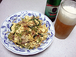 朝6時15分からジョギング35分、ストレッチ10分で大汗、77.2kg。昼は社員食堂で鮭イクラ丼(700円)。夕刻、雲が厚く(残念なことに)皆既月食を見られない。連続“休肝”日として“男の手料理”でゴーヤチャンプルーに挑戦。レシピ参考にしたのはYAHOO!セカンドライフ。調味料は味の素CookDo(ゴーヤチャンプルー用)。なかなかの出来映えで味もグッド。帰宅した三枝子さんのリクエストに応えて、さらに一皿分を追加料理(男は“お調子者”なのだ!)。独レーベンブロイ・アルコールフリー(アルコール分0.5%未満)330mlを2本、食パン1枚。デザートに梨。