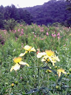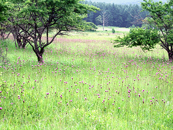 日光からいろは坂を経て10時30分、戦場ヶ原の「赤沼」に駐車。クマ出没に怯えつつ戦場ヶ原ハイキングへ。昨日もこの近辺で目撃情報あり。笹薮が風に揺れてザザッというたびにドキッとする。北海道で買ったクマ避けの鈴をいつも家に置いてくるので、今度こそザックに着けておこうと反省しきり。花の絨毯のような小田代原を経て湯滝まで3時間歩く。13時30分湯滝茶屋で舞茸そば。雨が降ってきて帰途5kmのハイク断念。ちょうど湯元からやってきたバスで赤沼まで(300円)。赤沼を出立、中禅寺湖畔の「イタリア大使館別荘記念公園」に立ち寄ったあと、「竜頭の滝」を眺めながら茶屋の「草団子セット」(400円)で一服。保養所に帰って、再び卓球で勝負!まあ引き分けかな?夕食、どうもコップが小さく、やはりビールは大グラスで一気にいかないと・・。プラスチックでもいいや。