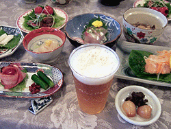 15時、日光の某健保保養所に到着。休憩後、とりあえず体育ルームで卓球勝負、大汗。お風呂に入って待望のロング缶(ここは原価=300円である)。食事は18時から=写真。ビール大壜1本、冷酒。バッタンキュー、多分、20時前にご就寝のもよう・・。