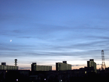 八が崎室内コートでテニス8時50分まで。コーヒータイムを経て帰宅。シャワー後77.0kg。玉子焼きなどの朝食&350ml缶。昼、徹くんと新宿南口の広島県アンテナショップ「広島ゆめてらす」で待ち合わせ。レストラン「歓粋亭」で広島焼ランチ(980円)&100円ランチビール&300円グラスビール。秋のピアノ発表会後に広島を訪ねる旨を約束して徹くんと別れ。神田神保町「Victoria」「Mizuno」などでテニスパンツなどを探すが気に入ったのがない。散策もいいが暑くて大汗じゃ。帰宅して350ml缶をプハッと。夕焼けと三日月がきれいじゃのう=写真。夕食はサンマ焼き(2尾)&野菜煮。350ml缶3つ&焼酎「黒烏龍茶」割り。