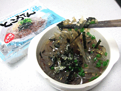 朝ジョギング30分、77.0kg。だれ?「無駄な悪あがきだ」と言う輩は??昼、コンビニでおにぎり(昆布)&あんパン、カフェオレ。主人公はどうやら究極の“食事対策”で目標に近づく魂胆らしい。夕食は、ところてん&うの花、独レーベンブロイ・アルコールフリー(アルコール分0.5%未満)330ml。実は、三枝子さんの帰りが遅いというので、常盤平から「ひと駅族」して桜通りを歩いてラーメン「寺子屋」でビール&ラーメンを狙ったのだが、店先に「本日お休み」の札。がっくりして五香駅前の「珍来」まで足をのばしてレバーにら炒め&ビールと思ったら、ここも水曜日休み。こうなれば今週2回目の“休肝”日として、コンニャクなどノンカロリー食品で・・と半ば自暴自棄(?)となった次第。ついでに21時から居間で「ビリーズ・ブートキャンプ」(応用編)を30分、小汗!明朝の計測が楽しみじゃ・・。