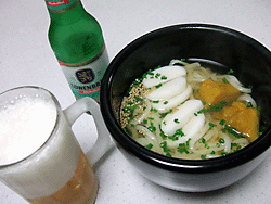 8月入りと同時に関東・甲信・北陸・東北の各地方で梅雨明け宣言。気分すっきり、小生も3年ぶりにメールアドレスを変えることにした。「amazon」などネットで買物しているところがいつのまにか増えていたので、それらのアカウント情報を変更するのがタイヘン。まあ、それ以上に迷惑メールの洪水に悩まされていたので、このへんでバッサリ仕切り直し。「早朝テニスクラブ」のホームページなど運営していると、どうやってもメールアドレスが盗み取られていくんだろうな・・。昨晩の“失敗”にめげずに“休肝”日実行!加ト吉冷凍さぬきうどんで“粗食”かけうどん・・。じゃこ天を加えて、独レーベンブロイ・アルコールフリー(アルコール分0.5%未満)330ml。