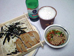 朝、完璧に二日酔い状態。八が崎室内コートの7時からのテニスもパッとせず。アクエリアスの500mlボトル2本あける。9時まで大汗、コーヒータイムして帰宅。シャワー浴びて再外出(忙しいことじゃ)。炎天下、わがマウンテンバイク(MB)で「21世紀森の公園」のバーベキュー会場へ疾走。「早朝」有志とともにビール&焼酎&シャンパン、焼肉、玉葱、沢庵・・。2次会は五香「シダックス」(おっと、ここまで帰って来れば家まで60秒じゃ・・)でカラオケ、歌い放題(もっぱら聴くほうだったが・・)&飲み放題で「カルピスサワー」「グレープフルーツサワー」など数杯・・。3次会はパスして帰宅18時、350ml缶2つ。マグロ丼&アサリすまし汁。