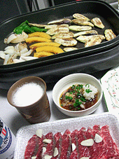 涙の土曜出勤日・・。昼は例によって大手町ビル地下「リトル小岩井」でお気に入りのスパゲティ・バジリコ。無事に(?)仕事を終えて“ひと駅族”して帰宅。夕食は鉄板焼で夏野菜いろいろ&牛肉=写真。ロング缶&350ml缶、焼酎水割り。ガーリックライスで〆。