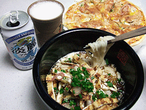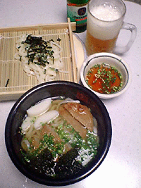 朝8時20分東洋学園大コートに遅めの出動、10時までテニス。小金原ココスにてタコスサラダ、フレンチトースト、ドリンクバー。その後「健美の湯」でのんびり。午後、まぐろ刺身丼&ロング缶2つ。ダービーなどTV観戦。夕刻、「亀城庵さぬき本膳うどん」一箱が高槻の父上より届く。夕食は昨日に続いてピザ(これは想定内である)、もずく酢・山芋ぶっかけそうめん(カリカリあぶらげ載せ)、350ml缶3つ。
