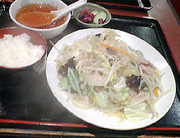 昼は農協ビル地下「永楽」で肉野菜炒め半ライス(800円)。野菜の量たっぷりで顎が疲れる。