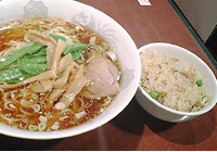 昼は農協ビル地下「永楽」でラーメン半チャン(950円)=写真。味、量ともに満足。