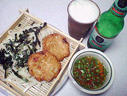 昼は、社員食堂のかき揚げ冷やしそばの大盛り(400円)、夜の部に備える・・。夜はたぶっちゃんと平野ちゃんとの飲み会、5年ぶりか。2003年8月29日に記載あり。えっ?それから会っていなかったかなア?練馬の「菊池下宿」(40年前)以来のおつき合いである。東銀座で一献、大ジョッキ2杯、芋焼酎水割り。さらに久しぶりの銀座でウイスキー水割り、ドンペリ、深夜0時帰り。本来は“休肝”日だが、そんなわけで今日の分は来週にまわすということで三枝子さん了解。