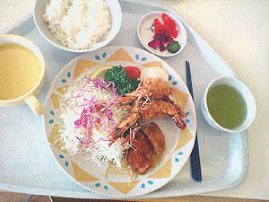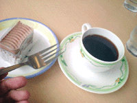 朝の計測78.2kg、ジョギング&ウオーキング(いつも周回している道を計測してみたら、ちょうど3500m。これを25分位でチンタラ駈けているわけさ)、シャワー後77.4kg。真ん中とって三枝子さん公認記録77.8kg。昼は社食のスペシャル定食(海老フライ)700円、本日は特にコーヒー、ケーキ=写真=がサービスでついてくる!