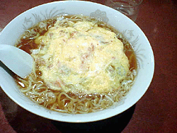 昼は農協ビル地下「永楽」で久しぶりに天津麺(900円)。とじ玉子の中にチャーシュー角片が入っている、まいう〜。