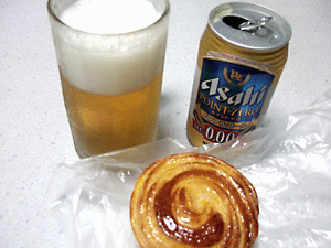 750円を所望。おいらは「味玉ら〜麺」880円=写真、並か大かと聞かれたので大と答える(料金は同じである。大は1.5玉)。噂に違わず美味しいが、和風の“濃い”味である。店を出て電車に乗って帰宅しても喉の奥にラーメン出汁の味が残っている。ノンアルコールビールで喉をうるおす。今宵はasahiの「ポイントゼロ」350ml缶を選択(アルコール分0.00%)。う〜む・・・先月1日から新発売。前製品で感じていた薬臭(?)がだいぶ改善されたみたいだな。別腹で「ザ・プライス」の売りきりタイムセールスで“50円”で買ったパンをいただく・・。