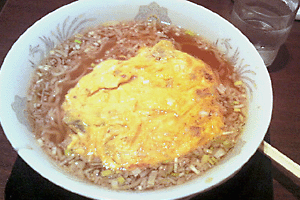昼12時になるとメチャ混み合うので11時50分に社を出て(歩いて7分かかる)、新JAビル地下の中華「永楽」で天津麺(900円)=写真左。