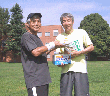 写真は『早朝』の岩田さんへの“56789”ゲット・プレゼント(カメラマン=藤枝くん)。