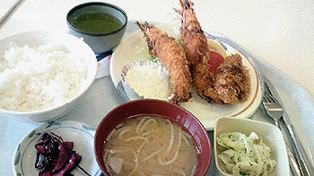 大海老フライ&サーモンフライ、隣の喫茶コーナーでのコーヒー(150円)付き。普通のAランチやBランチが580円だから、ちょっとお得である。