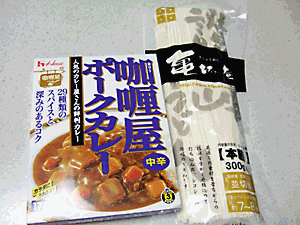 夕刻、笹やんのピアノレッスン。ピアノではなくて発声法の特訓となってしまった。11月発表会ではまたまたピアノ弾き語りをするが、下手な歌を聞かされる側は堪ったものじゃない。少しは“聞かせる”歌を頼むよというわけである。冷や汗、脂汗、大汗。帰宅して「亀城庵さぬきうどん・本膳」並切麺150gを茹でて「ポークカレー中辛」と併せる。茹でたうどんを水洗いせず“釜あげ”でいただくのが我輩流こだわりの「カレーうどん」=写真。しかしカレーの後味が化学調味料臭い。87円だからしょうがないか?やはりカレーはわが家でつくったものにかぎる。「キリンフリー