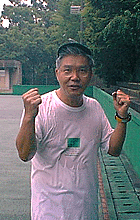99年6月8日(火)朝、しゅうちゃん、ラケット持参で、名古屋へ行く。翌9日(水)の朝、鶴舞公園で、いざ5年ぶりに勝負!勝負!