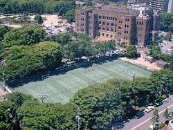 名古屋の朝は早い。日の出とともに早朝テニスの同好の士が鶴舞公園にやってくる。公園の中で、住宅とも離れているからテニス騒音の苦情とも無関係。全天候型の4面のコートのうち、2-3面を使用する。