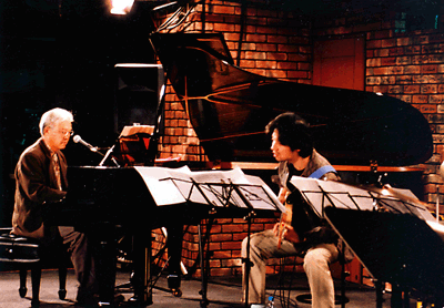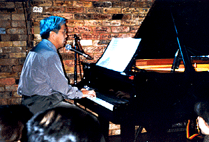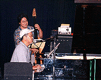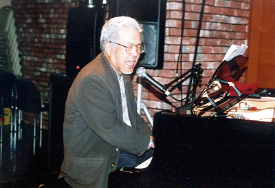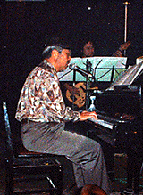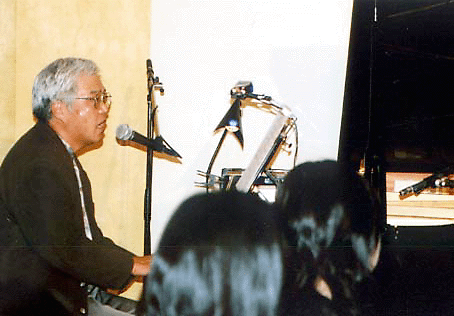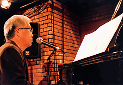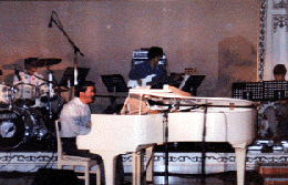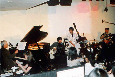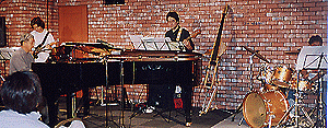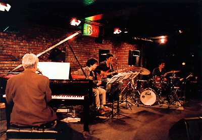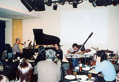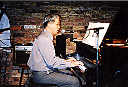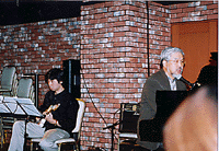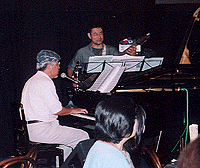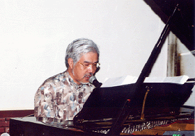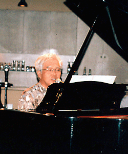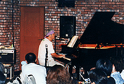 【笹谷俊水先生のご紹介】 東京音楽大学在学中より、ダンスホール・ナイトクラブ・各種ツアーでピアノを弾き始める。卒業の年に、『ペドロ&カプリシャス』のメンバーチェンジに、ピアノ・シンセサイザー・コーラスのメンバーとして参加。8年程在籍し、その間、アストラッド・ジルベルト、ブレンダ・リーなどと共演。退団後、NHK朝の連続ドラマや、銀河テレビ小説、映画、ミュージカルなどにピアノ・シンセサイザー奏者としてスタジオワークをし、ジャズを佐藤允彦、徳山陽氏に師事。ソウル、ラテン、ジャズなどのライブ活動をして現在、日本芸術学院、宮地楽器で講師活動を中心にしている。(写真は2005.11.19の講師演奏) |