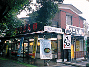 カウンターのみのうどん屋さんだが、そのカウンターの高さ加減が、気になる。タモリの番組に店主が出演した−などと壁に古い張り紙。かき揚げうどん550円、大盛りで150円増し、合計700円。立ち食いではないが、あの店構えにしては金額高い。つゆは薄めの味、麺自体はそんなに大したことはない。店を出て、頭上の電線に鳩がとまっていたら、糞の爆弾に注意!エライ目に遭いまっせ!私は、Yシャツのポケットに直撃弾を受けた!評価としては、ちょっと飛び込んでうどんを食べるには、「まあイイカ」といった程度で☆1つ。 (1999.8.1)