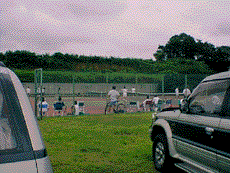 2002年8月から日曜日の舞台は、北豊島コートから東洋学園大学流山キャンパスのテニスコートに移っている・・。きれいなオムニコートだ。