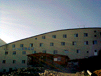 ここは4年前にも泊まった。そのもっと昔は「ニューフサジ」という名前だった。部屋数多く、予約なしでいつでもオ−ケーだ。地獄谷から引くお湯が豊富で、窓が広く、山を眺めながら入る浴槽も大きく、非常に気持ちいい!ただ、2400メートルの高地で、冬は雪にすっぽりと埋まる。春に雪から掘り出して使用するので建物の痛み激しく、部屋もそれほどきれいではないのが難点。今回、食事も箱もので、夕食は薄い豚カツにお飾りのキャベツ少々などお粗末、写真撮る気も起きなかった。ビール現金でロング缶700円。