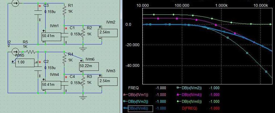 よって2段目の抵抗は変形した1次のLPF特性で初段のCap.からこのLPFを引いたものが