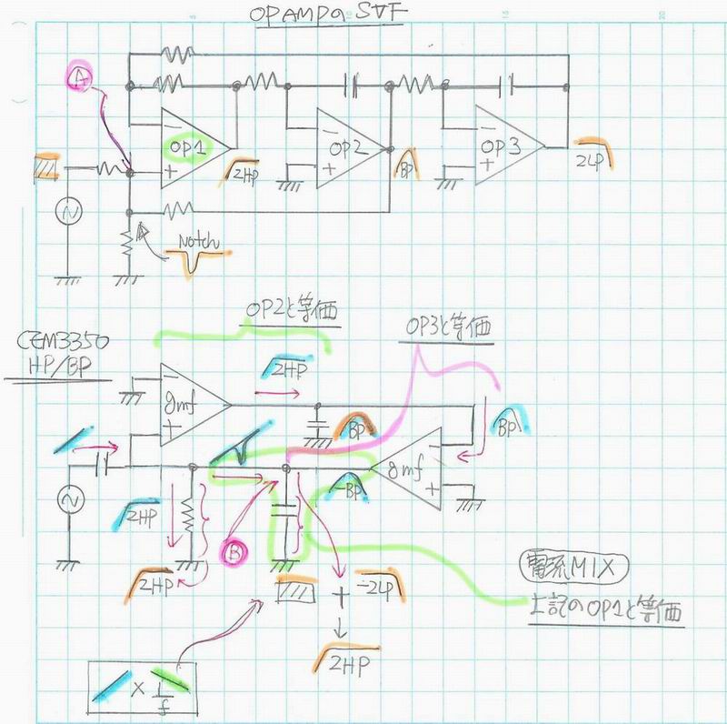と言うかCEM3350の場合は電流MIXなのでOP AMPの SVFのように機能が分離されていないので同じ場所で複数の反応が同時に起こる。