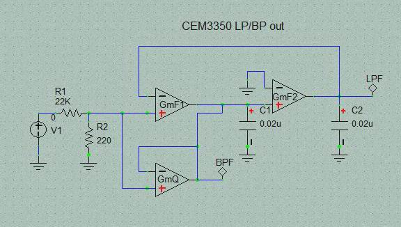 このCEM3350の SVFは動作理解が普通のSVF回路より難しいので一般的なOTAの等価回路を用いてGmqのOTAの付近をシミュレートして見ました。