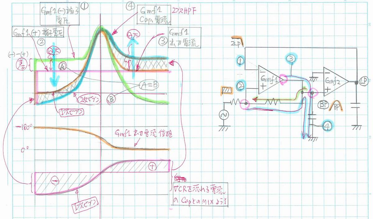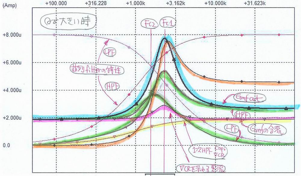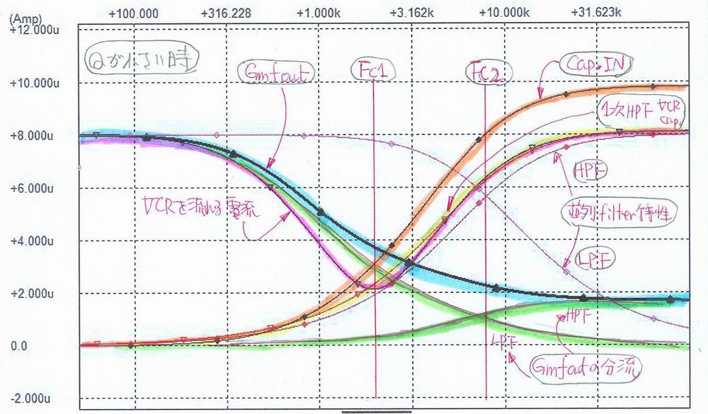 * GmF1出力 0.02uF Cap.付近の電流の重畳と filter特性の変化