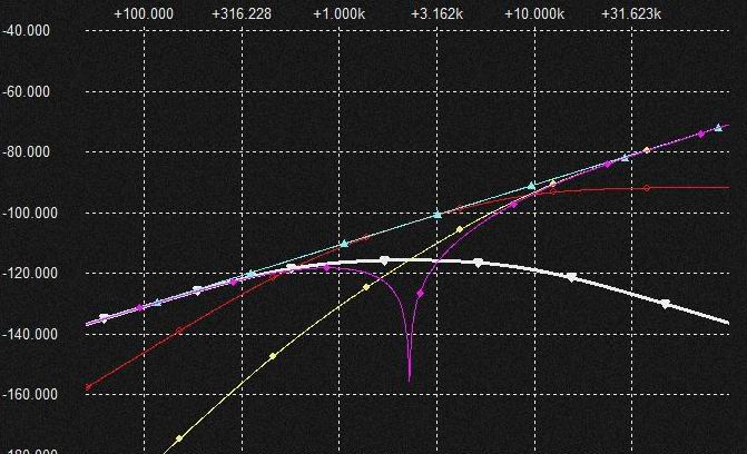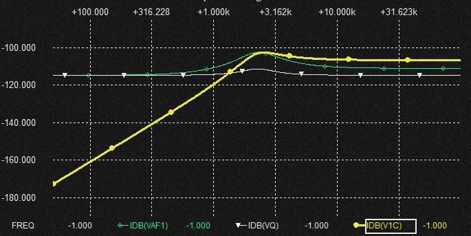 この3個の電流がVCRとCap.に対して重畳される。 定電流入力filterのRへの分流分はFc以降は低下するのでVCRに流入するのはFcの周波数付近まで。 これと1次 HPF電流の差(逆相MIX)がVCRに流れる電流。