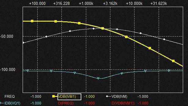 上図左の一番下の図はGmF1の定電流とVCRを流れる電流のMIXの際にVCR電流がどのように作用しているかを示しています。 Fc以前は定電流の振幅を低下させる方向に、Fc以降は定電流の振幅を増加させる方向に働いています。 このグラフをよく見るとこれは1次の微分特性というか1次のHPF特性を示しています。 なので Fc以前の帯域は定電流出力の1次HPF特性を2次の HPF特性にするように働いておりFc以降は単に GAINの増加になっています。