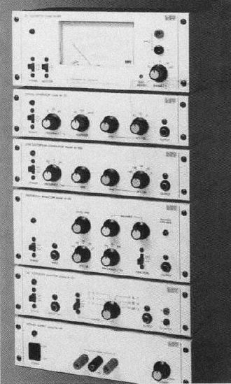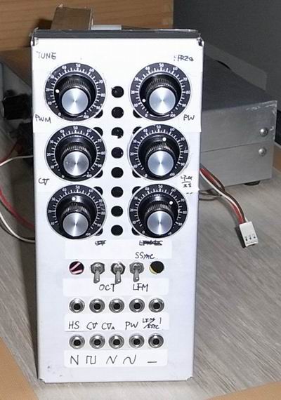 ・LUX KIT これらの物に対しては購入するまでには興味がいかなかったのですが唯一、 LUXKITの A-502という Pre Amp KITのみ購入したことがあります。(80年代初頭) このA-502、LUXKITの中では安価な部類のKITで(当時 3.5万程度)筐体が金属でなく側面、天板にベニア板を使用していたことを思いだしました。 高級感はなかったが手作り感がよかったです。 LUXKITでは測定器のKITもありこれも側面はベニヤ板でちょと他のシリーズと異なり、パネル、筐体の作りがanalog synth moduleに通ずるものがあります。 このシリーズ当時存在は知っていたはずですが買うことはありませんでした。 現物を見た記憶もあいまいな為、実質NETの写真でしかみたことがない存在でしたが現物を入手することができました。 当時KITのカタログ類はいくつも集めましたが synthのカタログのように現在まで保有しているものは皆無。 測定器シリーズのサイン波発生器です。 23cm(L) * 6cm(H) * 13cm(D)の筐体サイズはちょうどいい大きさに思えます。 電源UNITのM-6Pを基準にして設定されたサイズのような気もします。 これの上位機は SVFの発振によるもので高精度をうたったものですがこれはウイーンブリッジ + FET VCRによるもの。 MOOG modularの最初期の試作器でmodule panelを上に積み上げていくタイプに似ています。 上の写真のM-3Gは最もパネルがシンプルなものですが他のものはもう少し複雑でこれらのケースを上に積み上げていった様子がカタログ写真にあります。 一番下段にある電源UNITがよいです。 NETにこのシリーズの回路図がありましたが電源部だけは掲載無し、残念。 これは2015年の無線と実験に掲載された物のようで確かこの号は本屋で見て買おうかどうしょうか悩んだ記憶があり。 なぜかそそるデザインでこのようなケースに module synthを格納する例は digsound80の雑誌掲載版にありました。 この筐体のセンスが好きで同じようなものを作って syntn moduleにできないかと思案 したのが以下。 両脇は木材、この幅に合うサイズのアルミのU字パネルをくっつけました。 このサイズのU字パネルはもう売っていないのでそれより少し小さい幅のU字パネルを利用したものも作ってみました。 それ用の側板はさつまあげが入っていたケースの側板がジャストサイズなので利用しました。 長めのU字パネルを使えば1Uサイズぐらいの Effecter用ケースとしても利用できそうです。 20年前くらいではこの6cm *20cmのU字パネルは130円くらいでしたが現在では5cm *20cmの U字パネルでも 270円程、前と後ろに用いると計540円で底板のアルミパネルも同じくらいするので計 800円くらいはかかってしまいます。 箱型のmodule caseは魅力的でたとえば100Mの moduleや MOOGのmoduleなどはケースにとりつけなくても単独で直立できるのがいいです。 このU字パネルを利用したものも縦に向ければ MOOG Module風のたたづまいにちょと似ています。 耳をつければラックマウントできそうです。