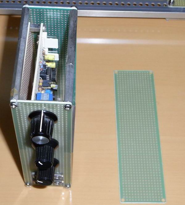 その他のアイテムを使用したパネル案 1: 万能基板の活用 穴位置の加工精度が優れていること、加工が容易なことがメリット。基板サイズは限定されるので思うようなサイズがないのが難点。 昨今のように基板を業者に発注すれば望みのサイズは手に入るのでしょうが、既存の万能基板がつかえればそれにこしたことはない。