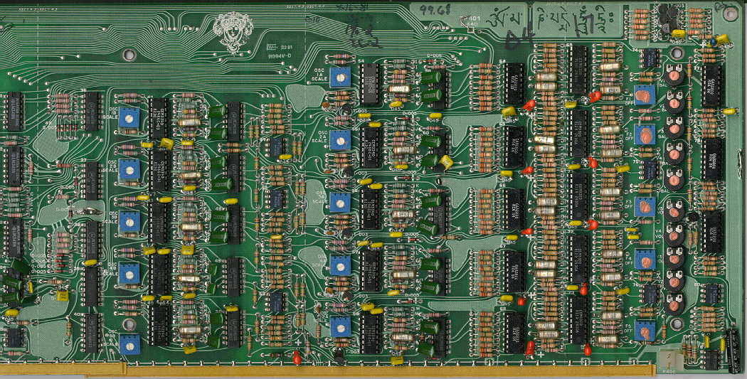 prophet600を購入してから2019年現在で23年ほど経過しますが中古購入(OS SIX-08、wincountryで購入 当時$450程度)ですのでこの個体自体は1983年の製造の物のようなのでなんと36年前の機材ということになりMIDI規格と同じ今年で36年が経過しています。 ここ6から8年近く?電源を入れていない状態でしたが最近になって動かしてみたところ初めは何も音がでない状態でした。 予想としては使用しているKBDが悪名高い松下のLOWcost鍵盤(*2)なので長年使っていないとゴム接点とそれが接触する基板のコンタクト部分が接点不良になることはよくあることあのでその覚悟はしていましたがそれより状態が悪いようです。