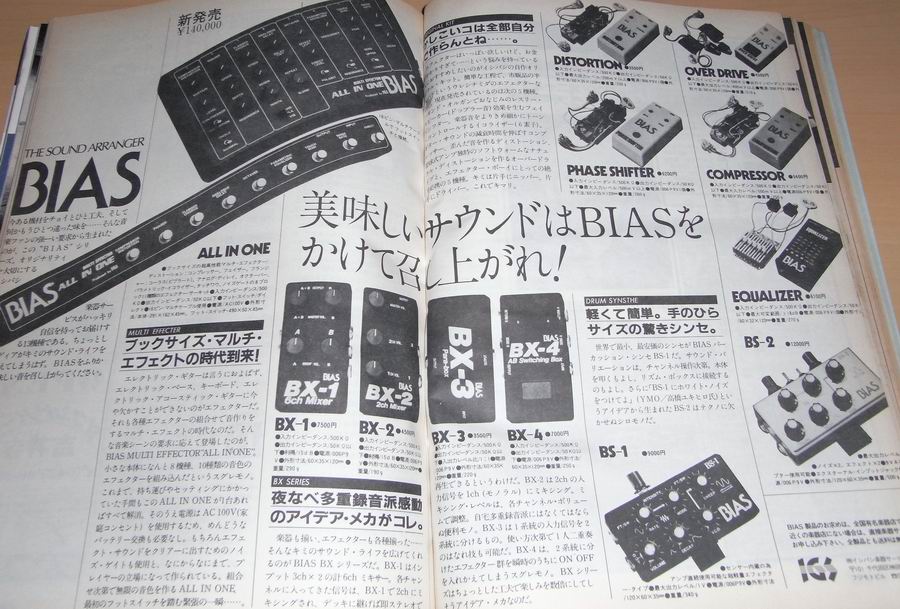 上記のように後になるとオリジナルEFFCTOR DIY以外にAMDEKとか石橋BIASのKITを単に組み立てるという回も多くなっています。 HARDメーカでない石橋楽器のリペア部門から派生している? BIASブランドのDIY KITやオリジナル機材がこのころけっこうありました。1982年の広告にBIAS製品の一覧広告が出ていました。