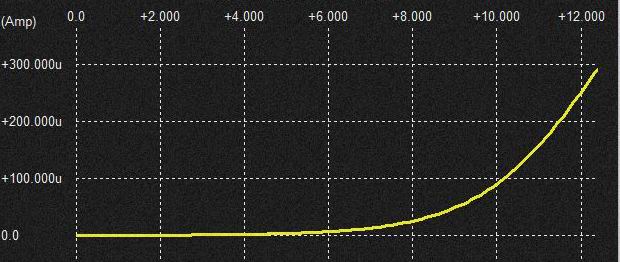 これがaudio信号用の差動回路の共通電流(テイル電流)になるので左右の各ladderに対してはその1/2の電流カーブで電流が流れますので、上記の例では CV=12.4Vで300uA程度。