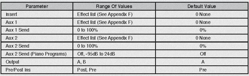 08:EFFECT 01* Wet/DryMIxAdjust ....... 初期値 02* Wet/DryMIxModSource .... Mix Levelの matrix modulation 03* Wet/DryMIxModDepth 04* RealTimeMod1Adjust ..... 初期値(Effectは共有されているので、この値は 05* RealTimeMod1Source 各 programの参照 Effect の一部の parameterへの 06* RealTimeMod1Depth 微調整値といえる) 07* RealTimeMod2Adjust 08* RealTimeMod2Source ..... 特定 parameterへの matrixmodulation 09* RealTimeMod2Depth