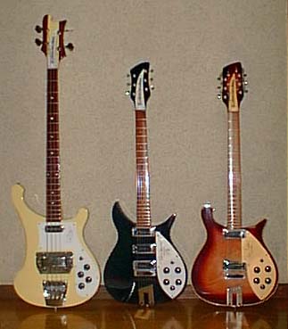 左のベースは4001CSで60年代の4001S(現在の4001/V63)をもとにしたイエスのクリス・スクワイアのシグネイチャー・モデル。私はクリス・スクワイアとかロジャー・ウォーターそれにポールがこのタイプのベースを使ってるのを見て虜になりました。真ん中はビートルズのジョン・レノンのシグネイチャー・モデルですがショートスケールの325ではなくフルスケールの350JL。325JLが欲しかったけど高くて、たまたま中古屋でこれが安く売ってたので買ってしまいました。そして右がハートブレーカーズのトム・ペティのシグネイチャー・モデルで660/12TP。50年代に標準だったゴールドのピックガードにチェッカーバインディング仕様となかなかおしゃれな仕上がりになってます。