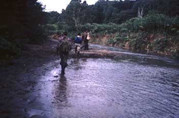 | マンデイサ氏が1994年に捕獲したオスグマの頭骨 | Moguchi川を遡上する |